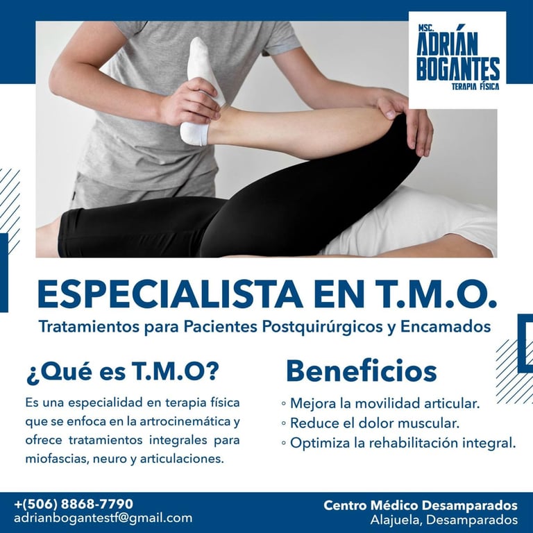 Servicios de terapia física en Terapia Manual Ortopédica para mejorar movilidad, aliviar dolor y optimizar bienestar. Con un enfoque integral, adaptamos cada tratamiento para tratar la causa raíz del problema y lograr una recuperación efectiva.
